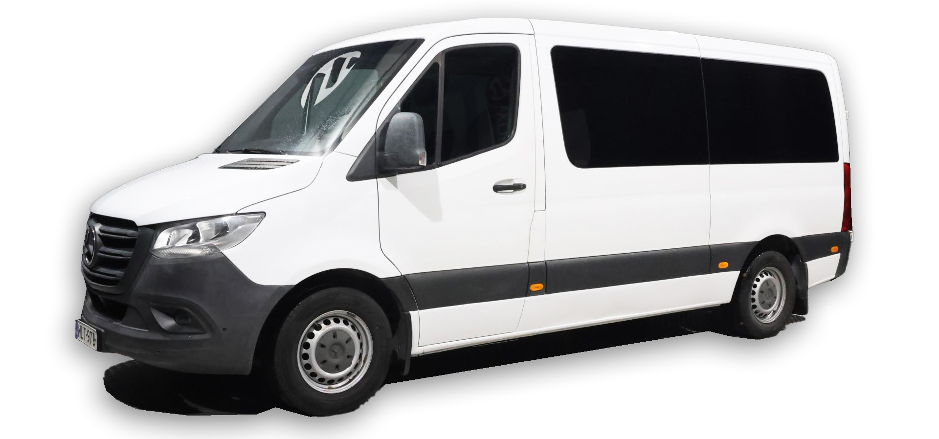 Vuokraamme Mercedes-Benz Sprinter 1+8 -tilatakseja, jotka on valmiiksi käyttöön varusteltu.